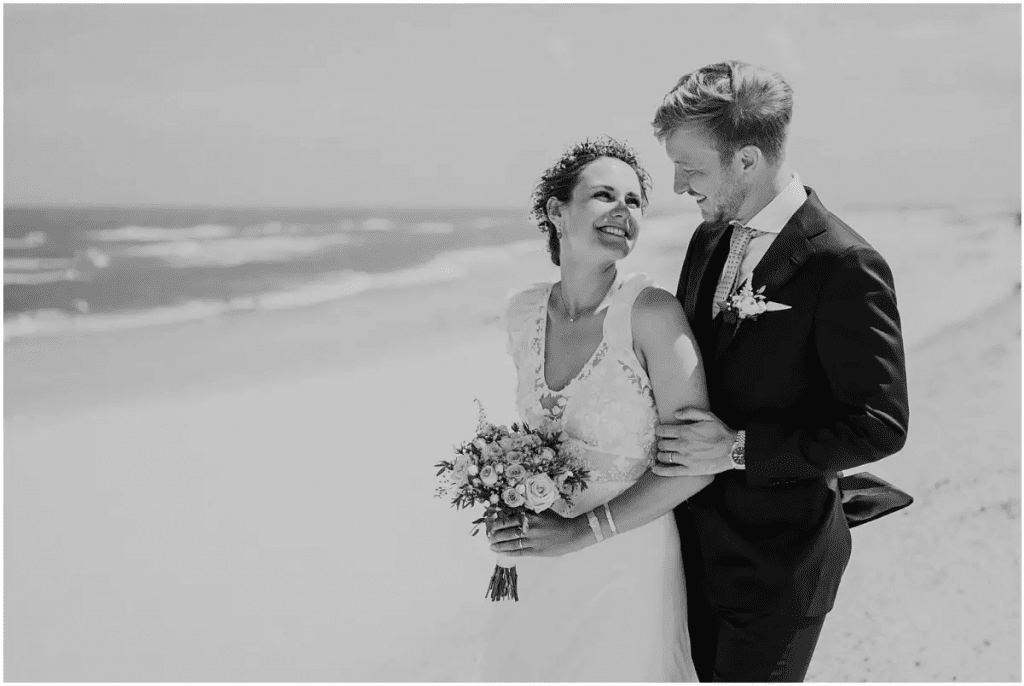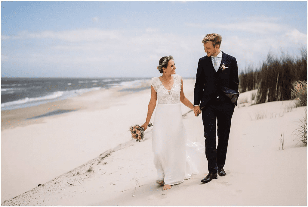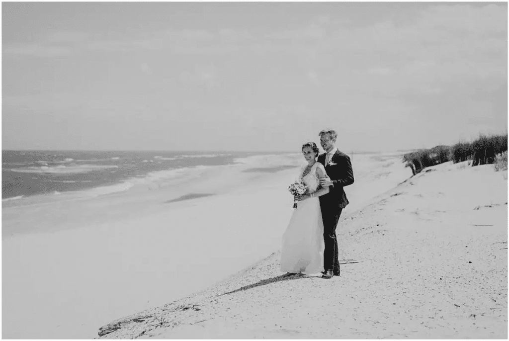 Das Brautpaarshooting führte uns durch die idyllischen Dünen entlang der unendlichen Weiten des Strandes von Wangerooge. Hier konnte ich meine Leidenschaft und Erfahrung für die Schaffung schöner, authentischer Fotos voll entfalten. Die Schritte im feinen Sand und die Blicke über die Dünen wurden infolgedessen zu unvergesslichen Momenten, die einen so bezaubernden Tag auf Wangerooge perfekt einfingen.