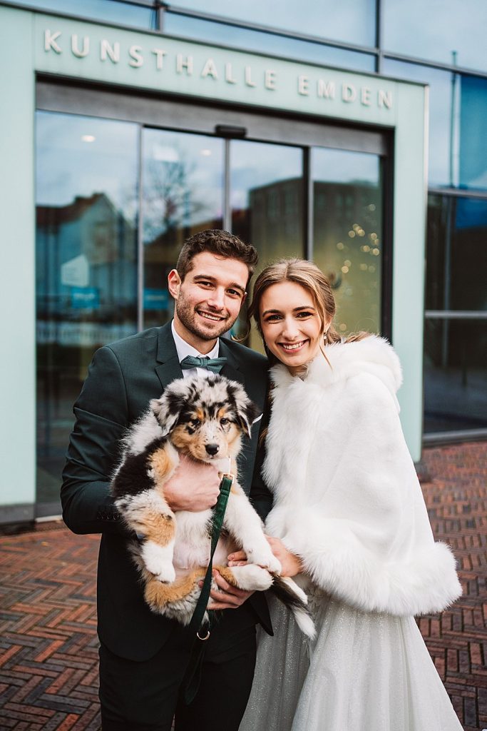 Brautpaar bei einer Hochzeit im Winter in Emden