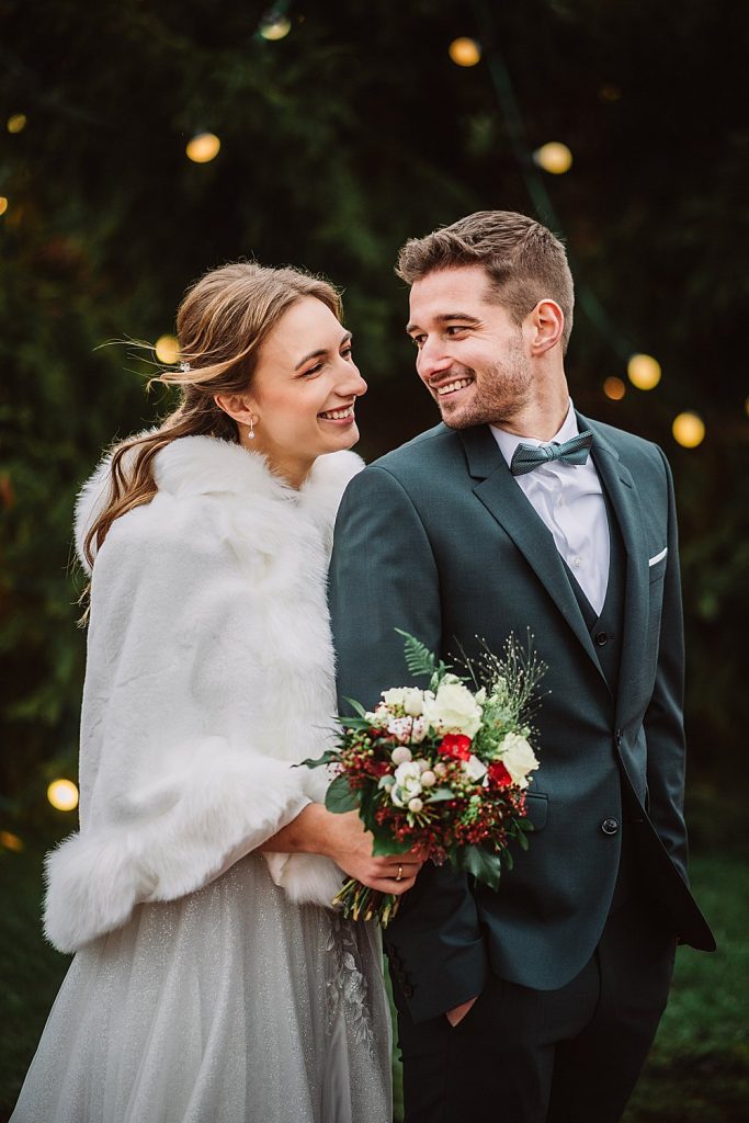 Nach der Trauung entstanden draußen ganz selbstverständlich diese kleinen Augenblicke: Blicke, Nähe, Lachen. Für mich als Hochzeitsfotograf in Emden sind es genau diese stillen, ehrlichen Momente, die eine Winterhochzeit so besonders machen – getragen von einer leisen, vorweihnachtlichen Stimmung.